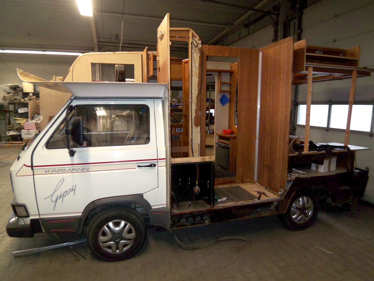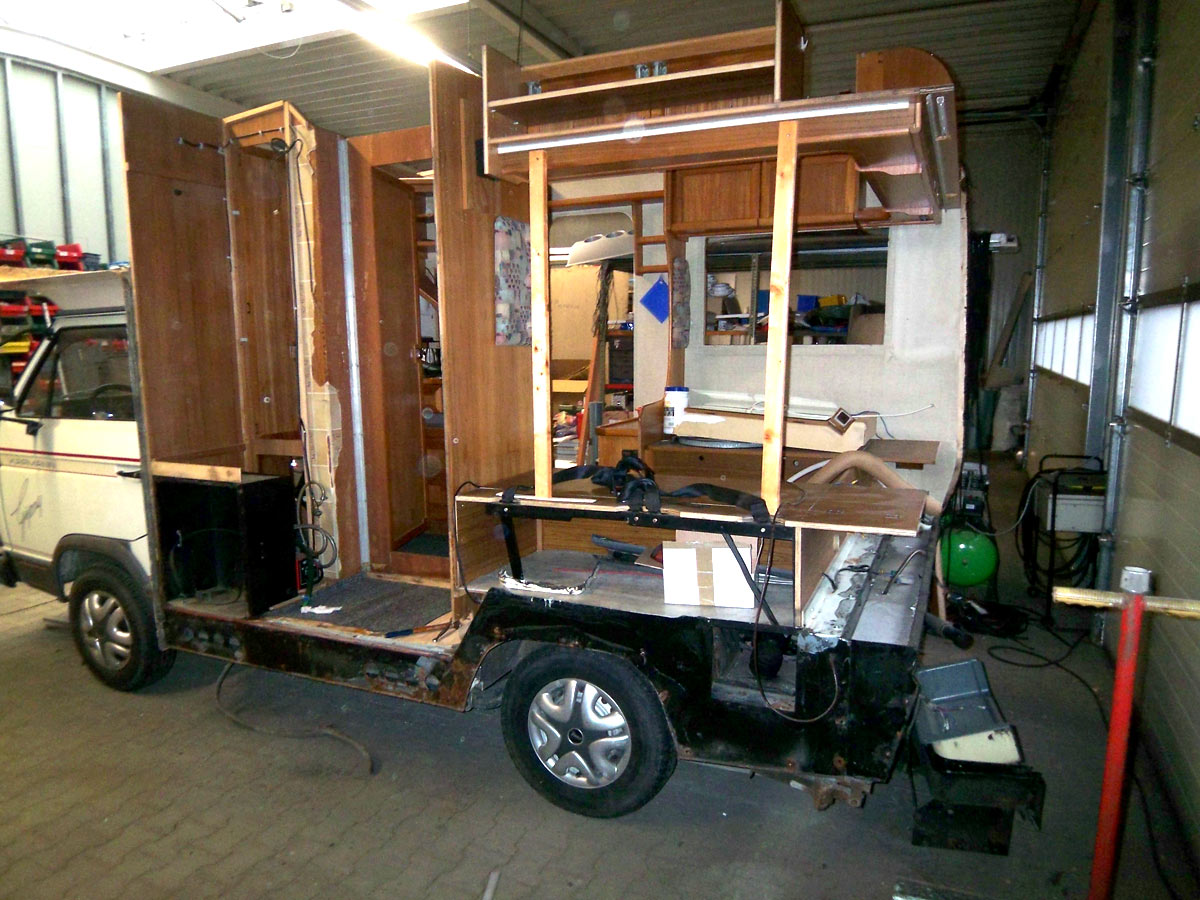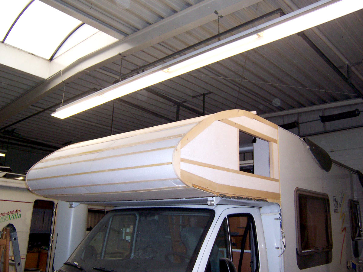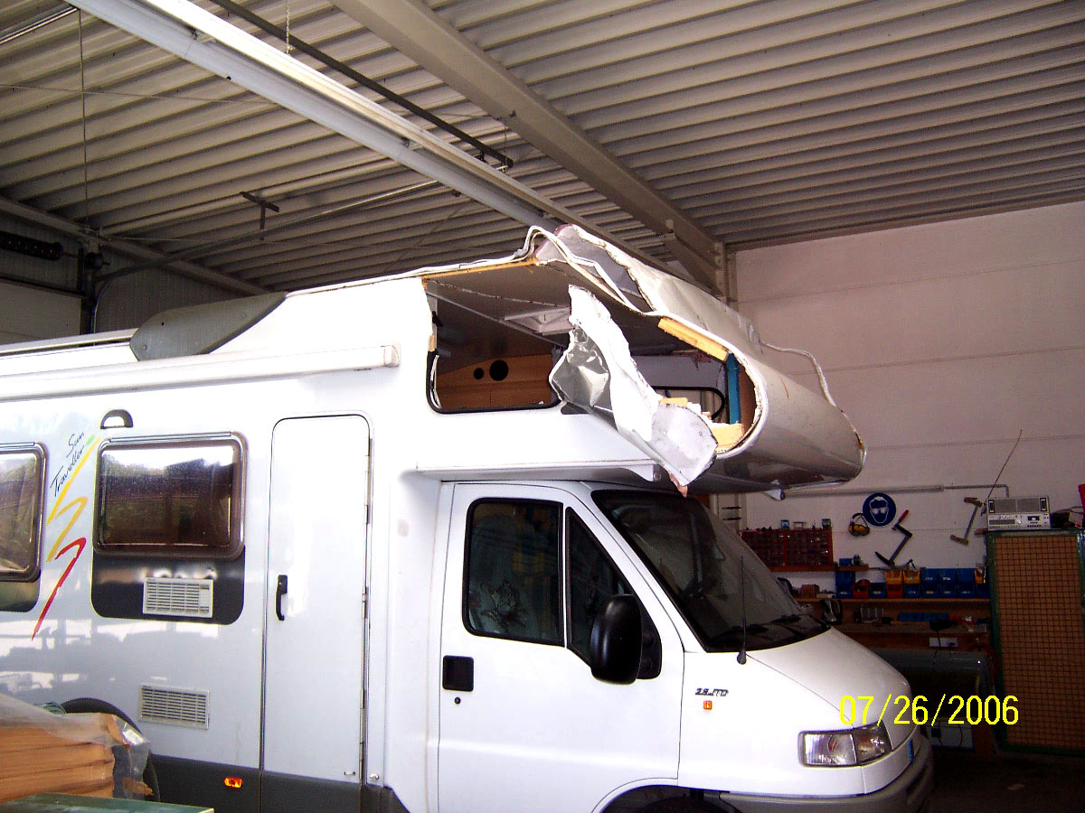 Austausch des kompletten Aufbaues. Beide Seitenwände, Heckwand, sowie Dach und Alkhoven.