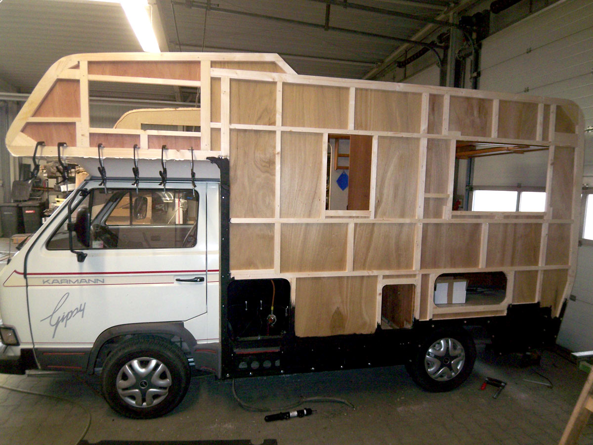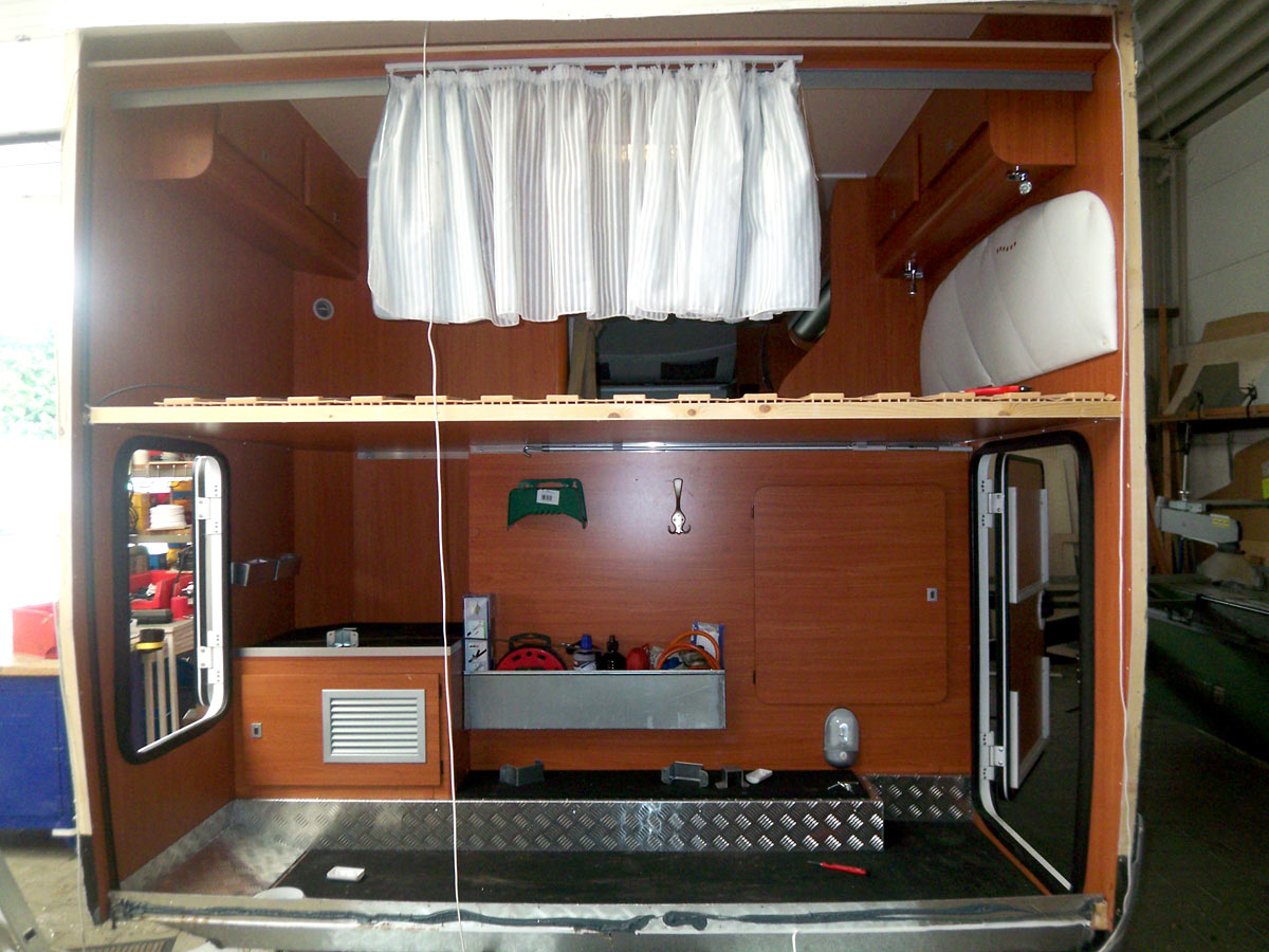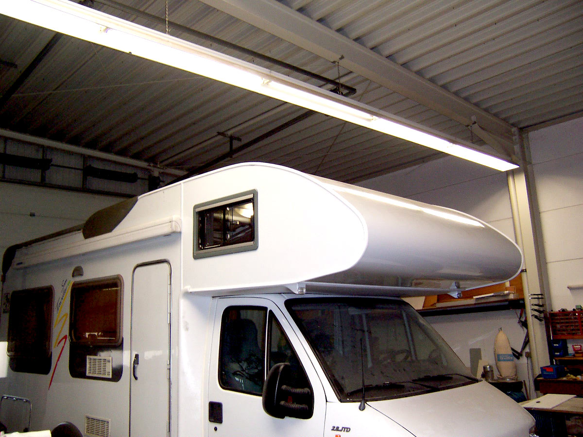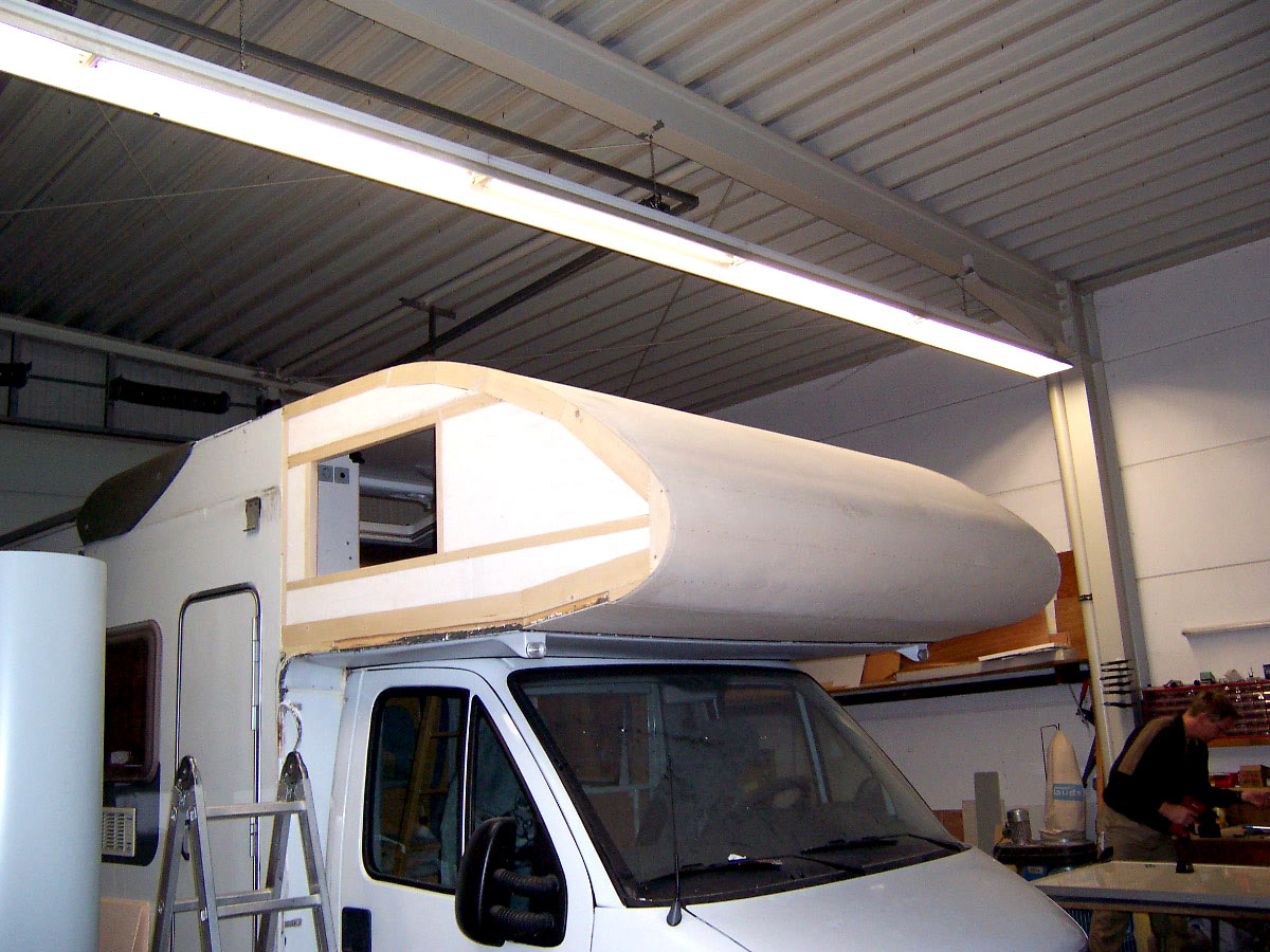 Austausch des kompletten Aufbaues. Beide Seitenwände, Heckwand, sowie Dach und Alkhoven.